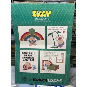 Vintage Lot 1980s Ziggy Designs Counted Cross Stitch Book, Fabric USA Made