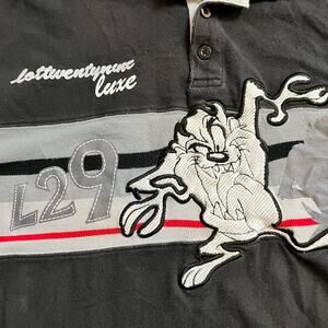 Vintage Lot 29 Polo Shirt Mens XXL Loone Tunes Tasmanian Devil Black