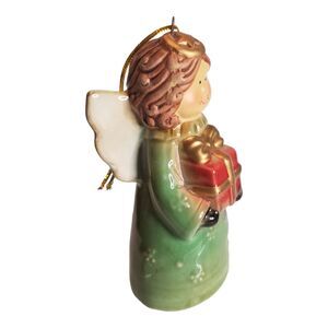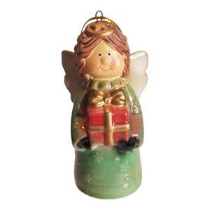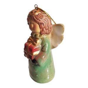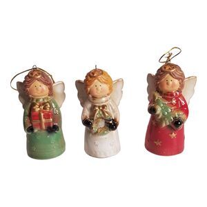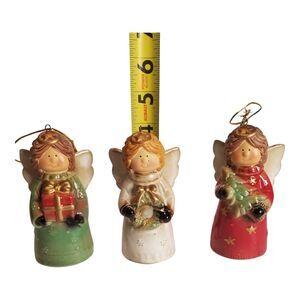 Vintage Lot 3 Angel Bell Christmas Ornaments Figurines Green, Red, & White 4"