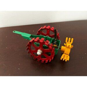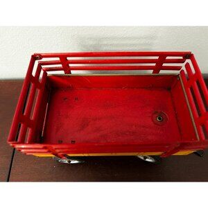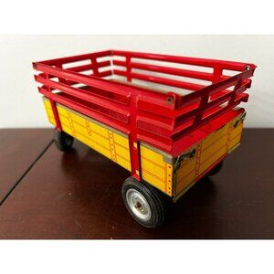 The other farm trailers and implements show great. Light dust. The seed bucket has light corrosion on hinges. The hook for the tractor is attached to one of the implements. Measurements on the tractor to give an idea of scale.