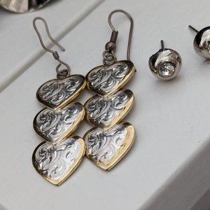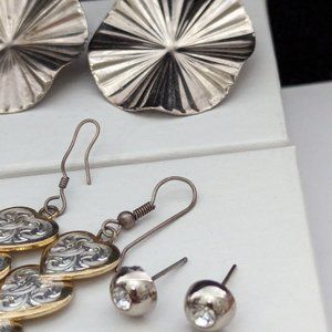 Vintage Lot Earrings Jewelry 3 Pairs Earrings Silver Tone Impressionist