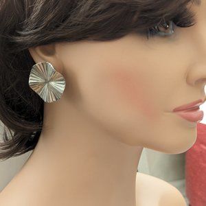 1.- Pair of Silver Tone Modernistic Textured Circle Wavy Pierced post Earrings