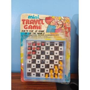 You will get both mini travel games listed. The mini fishing game is unopened with the card having some bending on the edges/corners. The checkers game is opened in the package. There is tape on the package keeping the game inside of it. The checkers game has some dirt on the tape as well. You will get both games in this lot. Both Vintage. Look at all pictures for complete condition Any Questions Please Ask Prior to purchasing Thanks for looking