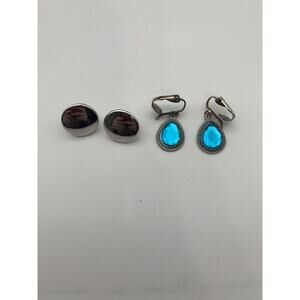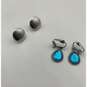 Vintage Lot Of 2 Pair Of Clip On Earrings Silver Tone And Blue Rhinestone Dangle. Condition is Pre-owned. Shipped with USPS Ground Advantage.