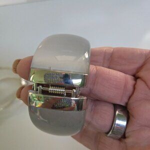 Vintage Lot Of 2 Retro Lucite Gray Moonglow/Clear Silvertone Hinged Clamper Brac