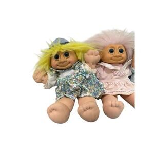 Vintage Lot Of 3 12" Russ Troll Plush Dolls Boys Girls Pajamas Dress Play
