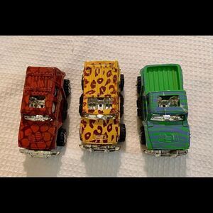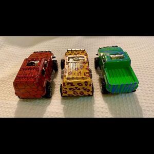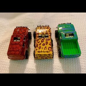 Vintage Lot Of 3 Toy 4 X 4 Trucks W Animal Prints Good Condition Unbranded.