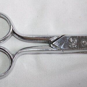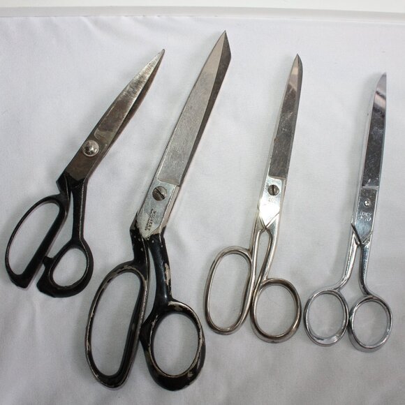 Crafted for versatility and durability, this vintage lot of 4 scissors includes a variety of household cutting tools to fit all your needs. The set features J.A.Henckels and Wilbert brands, alongside an unbranded pair from Italy, model #70. Each pair is designed with straight blade edges and comes in a sleek combination of silver and black colors. The set is made with multi-functional features, ensuring they are suitable for a range of tasks around the home. Although the country of manufacture is unspecified, these scissors are intended to provide reliable and efficient cuts for everyday use.