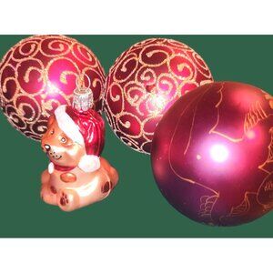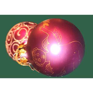 Step back in time with this charming set of vintage Christmas ornaments. Featuring delicate maroon and gold designs, these glass and aluminum treasures include angels and a festive puppy figurine.