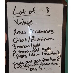 Vintage Lot Of 8 Xmas Ornaments Maroon & Gold Glass/Aluminum Angels & Puppy Figu
