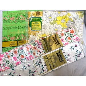 Vintage Lot Of Gift Wrap, Florals 1960s & 70's