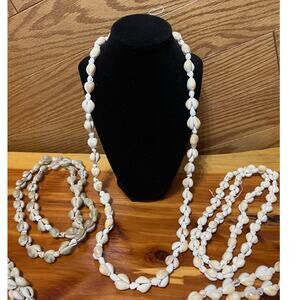 Vintage lot of four authentic puka cowrie shell Hawaiian necklaces with small nassa shells.