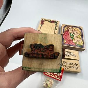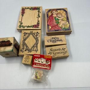 Vintage Lot Rubber Stamps Crafting Junk Journaling Christmas Stained Glass