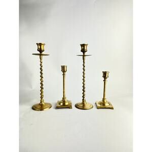 Vintage Lot Two Sets Brass Candle Sticks Wedding Holiday Decor
