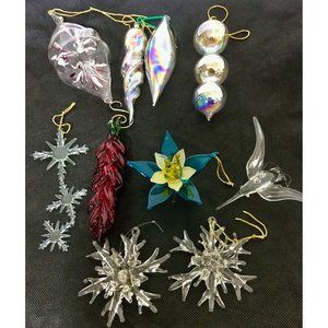 Vintage Lot of 10 Blown Glass Bird Pepper Flower Christmas Ornaments