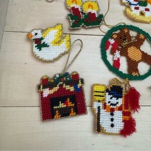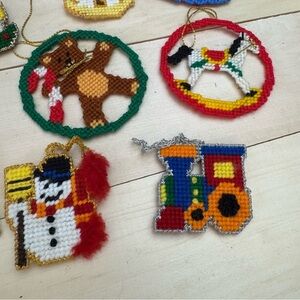 Vintage Lot of 11 Needlepoint Christmas Holiday Ornaments on Plastic Canvas