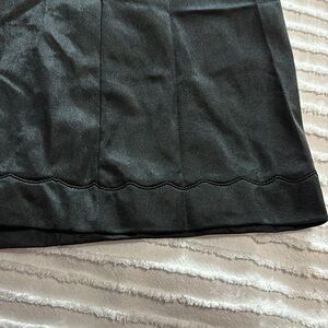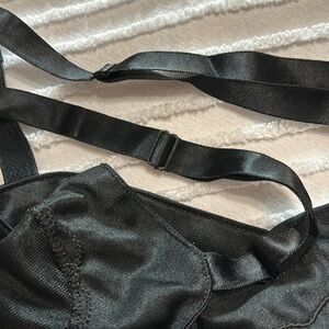 Black one is by Sears, Size 36 with straps. Settles below knees top to bottom length is 32”, pit to pit 19”
