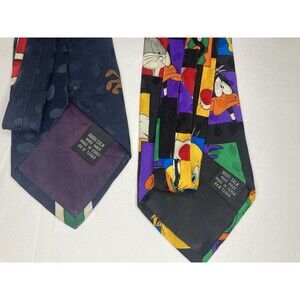 Vintage Lot of 2 Looney Tunes Mania Warner Bros. Bugs Taz Tweety Elmer Neck Ties