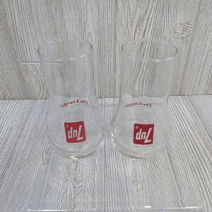Vintage Lot of 2 7UP Glasses The Uncola Collectible Upside Down Drinking Glass