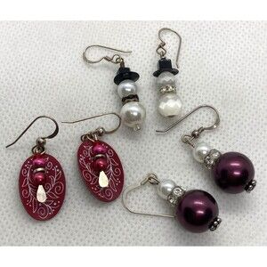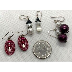 Vintage Lot of 3 Beaded Dangle Earrings Sterling 925 Silver 11g Snowman Purple