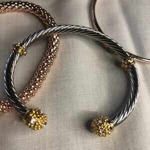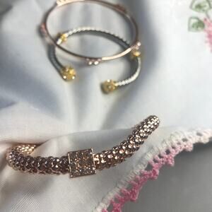 Vintage Lot of 3 Bracelets Gold, Silver, Copper Rhinestones Bangles
