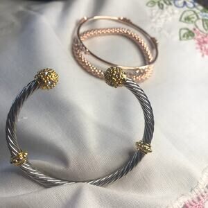 1. Silver twisted open ended bangle with gold & rhinestone accents