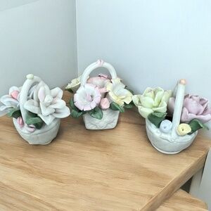 Vintage Lot of 3 Ceramic Mini Flower Baskets 2"