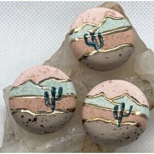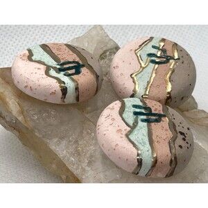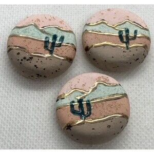 Vintage Lot of 3 Ceramic SW Style Hand Painted Button Covers 80s 90s Style