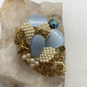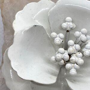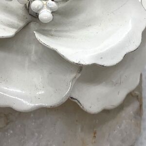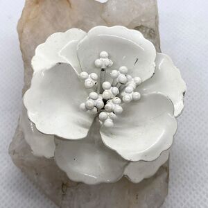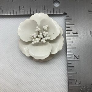 Notes: Moderate surface scratches and some surface wear. Overall good vintage condition. Some wear on metal. No missing stones. Some small areas of chipped paint on white flower. Please see photos.