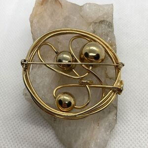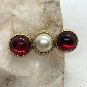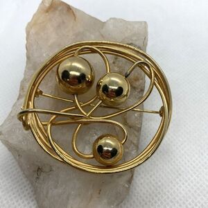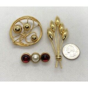 Vintage Lot of 3 Gold Tone Pin Brooch Organic Shapes Red Rhinestone Round