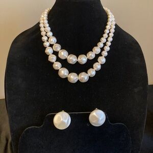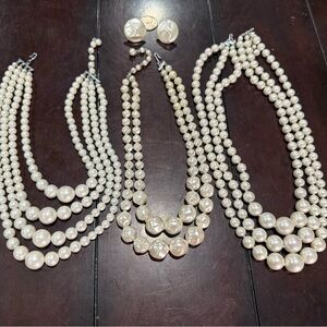 Vintage Lot of 3 Japan Faux Pearl Multi-Strand Necklaces &Earrings Stamped Japan