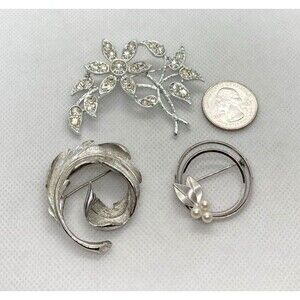 Vintage Lot of 3 Signed Monet Krementz Emmons Silver Tone Pin Brooch Rhinestone