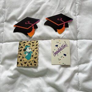 This lot includes four unused vintage 80s 90s graduation mini greeting cards featuring Disney characters. Made in the United States! Perfect as cards, for scrapbooking, and junk journaling!