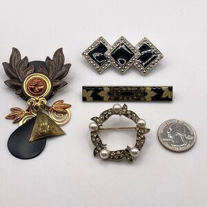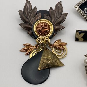 Vintage Lot of (4) Gold Tone Silver Tone Pin Brooch Rhinestone Decorative Sun
