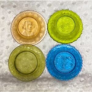 Vintage Lot of (4) Westmoreland 3 1/2" Scalloped Edge Themed Mini Plates . Vintage plates feature (4) different designs & colors;