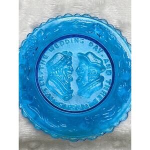 2) blue- man & woman center, inscribed "wedding day and three weeks after", floral