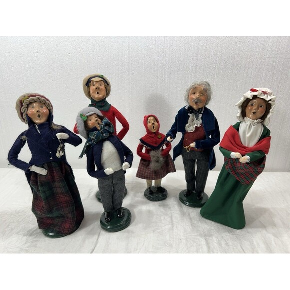 Wonderful vintage lot of 6 Byers Choice Carolers, beautifully handcrafted Christmas figurines spanning multiple production years including 1985, 1987, 1995, 1998, and 2004. Each caroler features the classic Byers Choice folk-art style with detailed clothing, expressive faces, and timeless holiday charm.