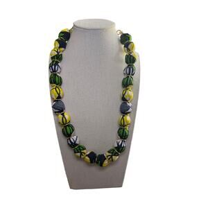 Vintage Lot of 6 Gold Tone Statement Necklaces Beaded Green Tones JJ Jules B