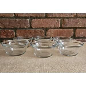 Vintage Lot of 6 L'Ovenware Glass Custard Ramekin Cups 6 Oz 177ml Made USA