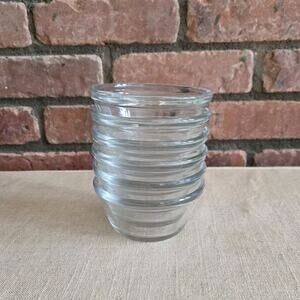 The cups are clear in color and are original vintage pieces. They are made of glass and are a type of kitchen glassware.