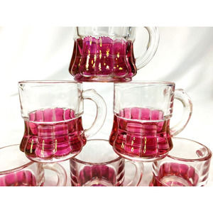 Vintage Lot of 6 Shot Glasses Clear / Pink Cranberry Mini Mugs Toothpick Holders