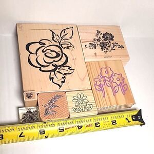 Vintage Lot of 7 Wooden Rubber Stamps Floral Rose Stamping Scrapbooking