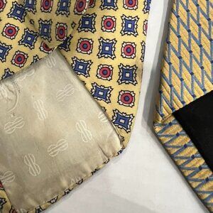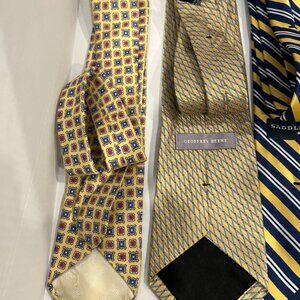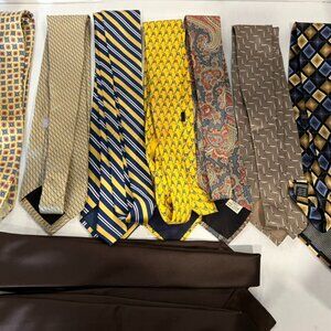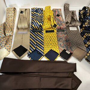 Vintage Lot of 9 Silk and PolyesterTies. Multiple Designers Shades of Brown and Yellow. Includes Geoffrey Beene, Bill Blass, Saddlebred, Saks Fifth Avenue, Peterborough Row, Giorgio Brutini, The Foundation For Cancer Research. The 2 brown ties do not have tags. The Yellow Saddlebred tie is extra long All in very good vintage used condition and presented as found. Please use pics as further description.