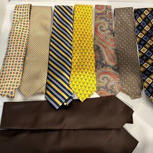 Vintage Lot of 9 Silk & Polyester Browns Yellow Ties Saks Bill Blass More