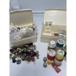 Vintage Lot of Mixed Sewing Notions, Buttons, Thread, @More