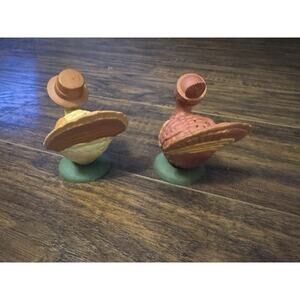 In good condition! This vintage lot of small plastic Thanksgiving holiday Pilgrim Turkey salt and pepper figurines are perfect for collectors or those looking to add a nostalgic touch to their holiday decor. The Pilgrim brand adds a unique element to these figurines, and the brown color adds a realistic touch. Made of durable plastic, these figurines stand at a small size and come in a set of 2, making them a charming addition to any Thanksgiving table setting or collection.