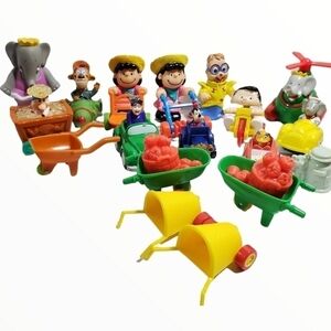 Vintage Lot of toys Babar Peanuts cars and more. Please see all pictures for details. Lot of multiple items. McDonald's, Arby's, Disney.
