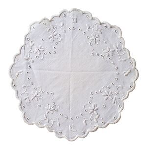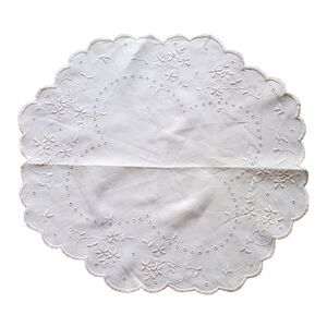 Vintage Lot 3 Round Linen Plate Doilies White Embroidery Floral Daisy