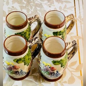 Vintage Lot/set Of 4 German Beer Ale Stein Mugs Ceramic Sz 7”
