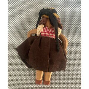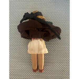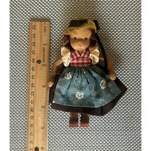 This vintage handcrafted wooden doll showcases intricate detailing with a traditional fabric outfit. The charming 5-inch design makes it a collectible for enthusiasts.